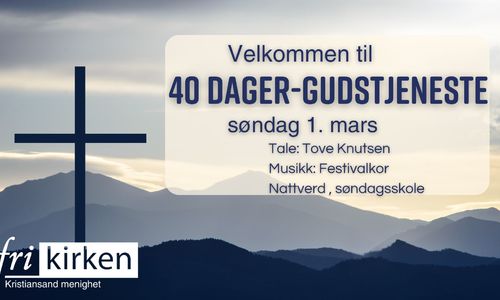 40 dager-gudstjeneste, tale: Tove Knutsen. Festivalkor deltar. Nattverd, søndagsskole.